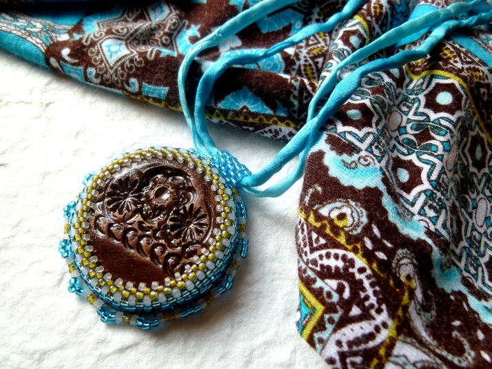 Keramický kabošon od Vevinka keramik - dělaný pro mojí mamku k narozeninám k halence