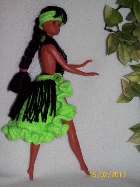 Šatičky pro Barbie na latinskoamerické tance. Jsou bohatě zdobené stříbrnýmiá flitry.