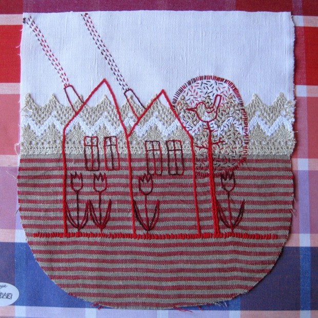 ... další kabelenkové vyšívání na lněném plátně s lněnou krajkou ... bavlnkami DMC