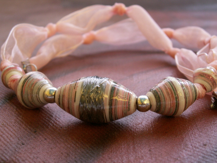 ..z kolekce RECY-ŠPERKY S PŘÍBĚHEM, která jest speciální kolekcí tvořenou recyklací krásných a pozitivně laděných papírovin a tiskovin, které běžně a k velké škodě naší i naší matičky Země, končí v koši. Každý jeden korálek tak promlouvá svým vlastním příběhem a neopakovatelnou barevnou originalitou, stejně tak, jako svým unikátním a nestandartním tvarem a velikostí. Příběhy tato kolekce vypráví různé: některé zpívají, jiné tančí, některé jsou plné květin a v jiných se zas prohání exotická zvěř..