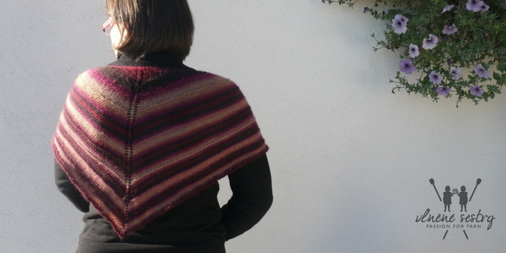 Krásný trojcípý šátek upletený z jednoho klubka Jawoll Magic Dégradé (85.0080)