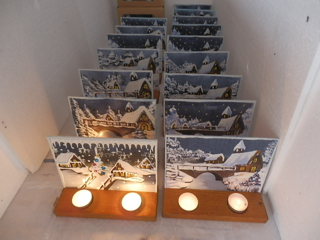 vánoční svícny ručně malované na skle-obsahuje dvě svíčky,dřevěný stojánek,dárkovou krabici....150kč