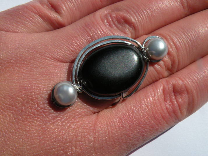 Prsten z chirurgické oceli,minerálu a říčních perel.