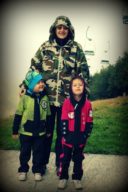 můj syn a neteř v RARA softshellových bundičkách a kalhotách