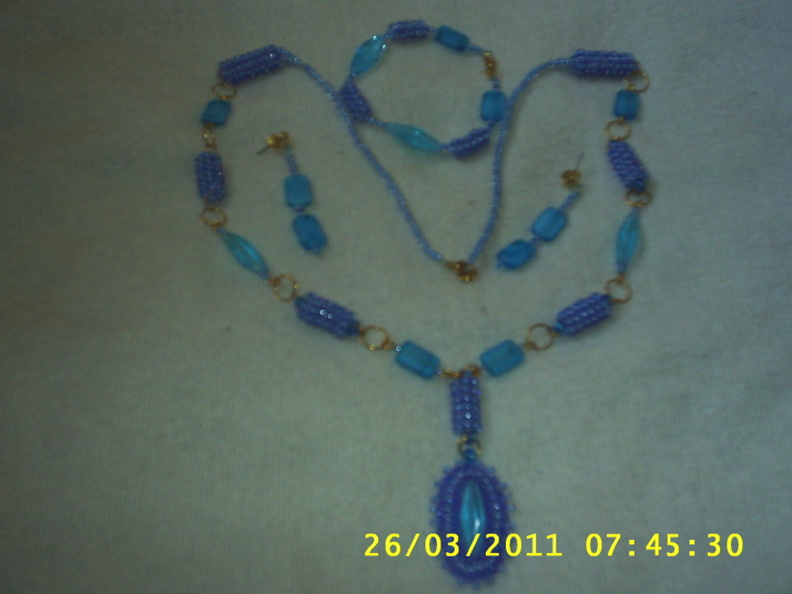 souprava z modrých korálků různé barvy šitý šperk spojeno ketlováním