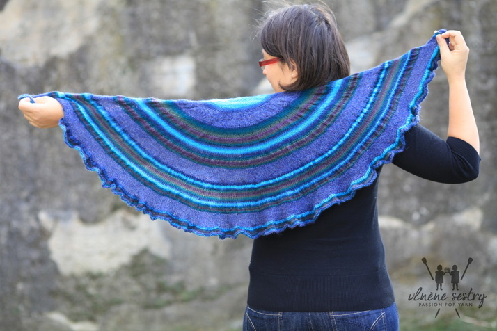 Šátek upletený z jednoho klubíčka Jawoll Magic Dégradé a jednobarevné příze fmy Drops