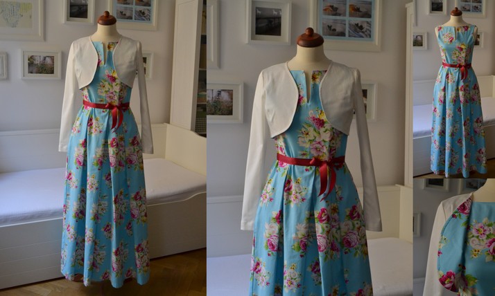 *Září 2013* Svatební, které být svatebními neměly :) Látka Jennifer Paganelli. Bolerko ušito pro jistotu, kdyby bylo chladno. Nevěsta vyfocena v "Nejvzácnější galerii" :)