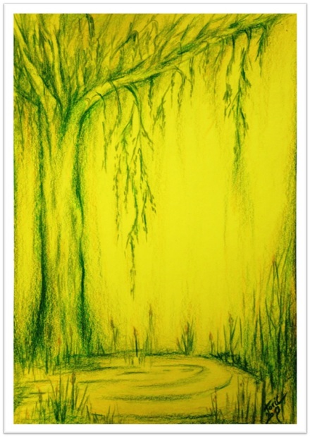 Kresba akvarelovými pastelkami na tónovaný papír.