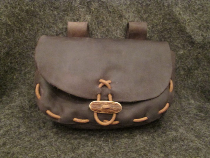 Kožená Tašvice, zapínání parohovým knoflíkem, šitá 4mm silným, koženým řemínkem, z 1mm silné hovězí hlazenice