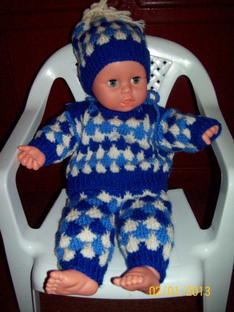 Třídílný pletený obleček pro panenku miminko velké 45 cm. Svetřík, kalhotky,čepička.