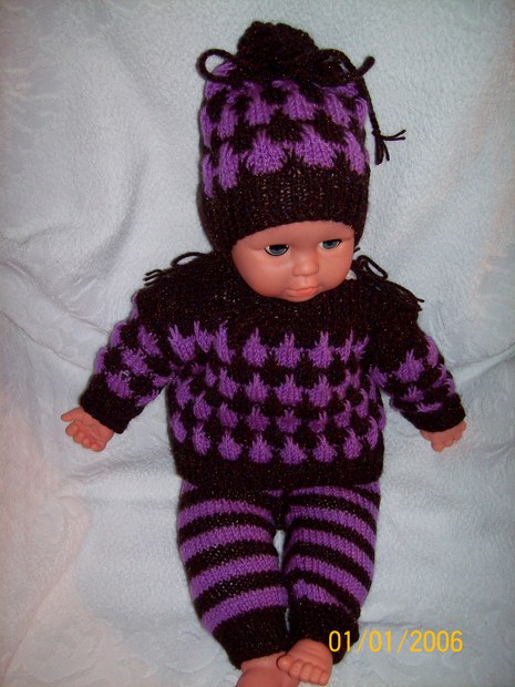 Dvoubarevný pletený obleček pro panenku miminko velké 50 cm.