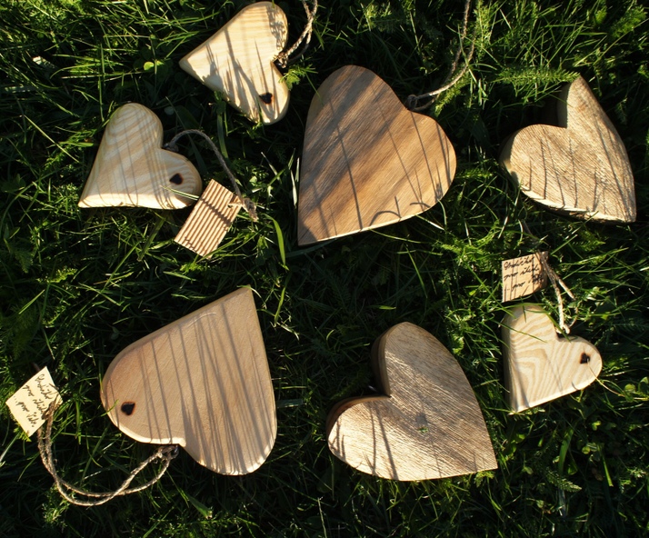 Srdce všech tvarů ze všech druhů a vůní přírodního dřeva