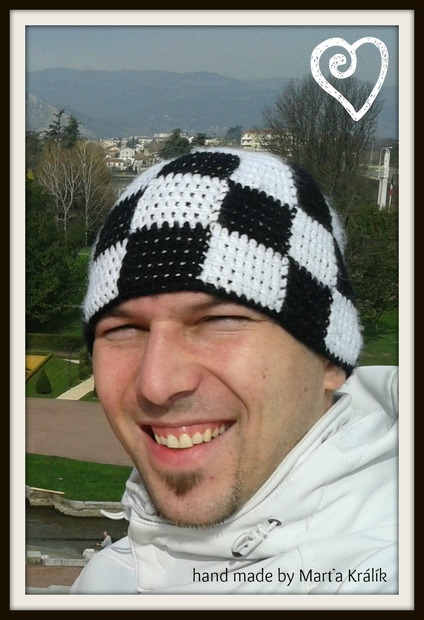Háčkovaná čepice klasická - šachovnice