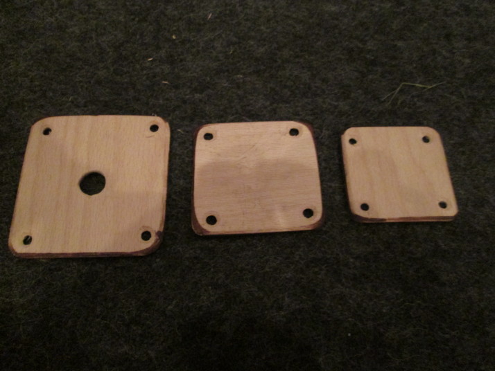 Karetkové destičky z lepených dřevěných dýh. Šířka materiálu 3mm,5x5cm za 15kč/kus, 6x6cm 17kč/kus a 7x7 20kč/kus