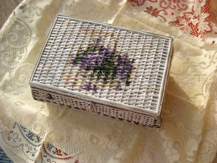 Můj první pokus o decoupage, renovace starého košíku na šití.