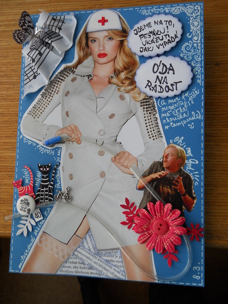 Opět zakázka - pro sestřičku na kolonoskopii, má 2 kočky, dceru, zetě mluvícího anglicky, jezdí na kole a zpívá v pěveckém sboru.