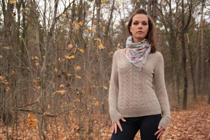 Pletený svetr s dírkovým vzorem vyrobený na míru. Exklusivní materiál - čistá alpaka z Peru.
