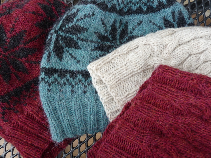 Nové čepice, vyrobené z kvalitních směsových přízí s vlnou a alpakou... Norské, copánkové i hladké...