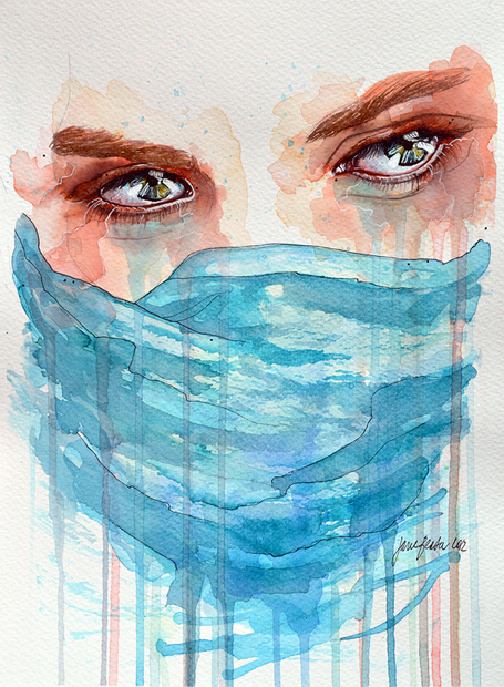 Akvarel a biely tuš na 300g polohrubom Fabriano papieri