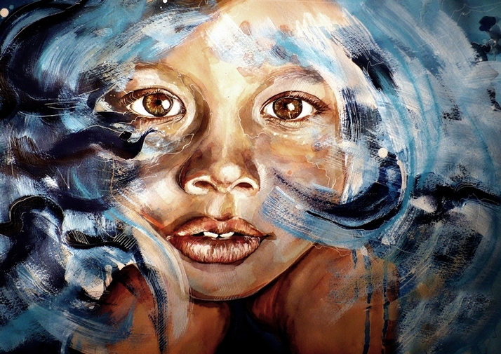 Akvarel, akryl a tuš na 300g polohrubom umeleckom papier