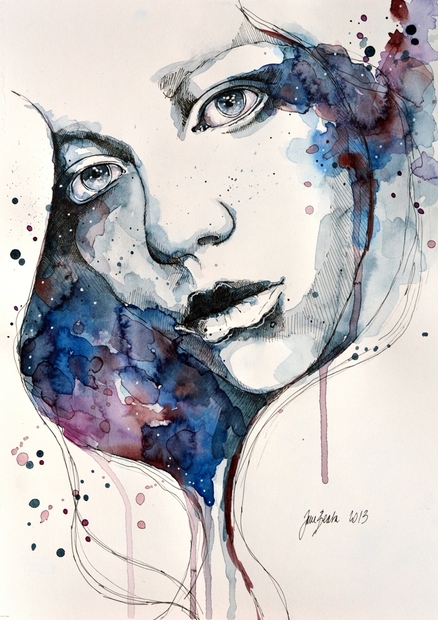 Akvarel a tuš na 230g hladkom papieri