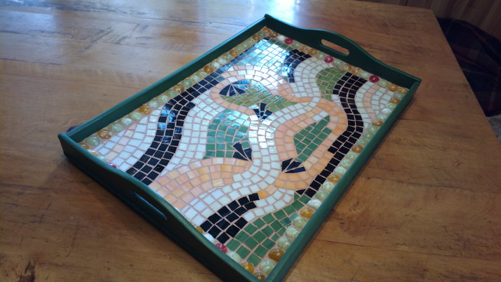 Servírovací jídelní podnos, ozdobený opálovou mozaikou