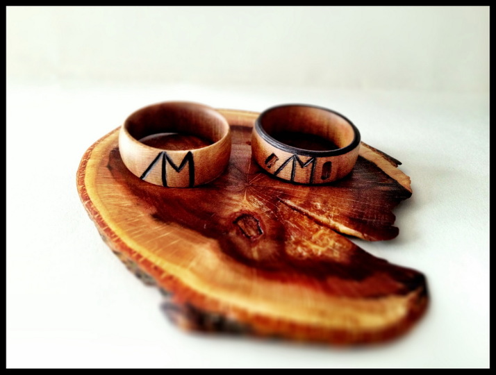 Zkušební kusy svatebních prstýnků a podnosu.