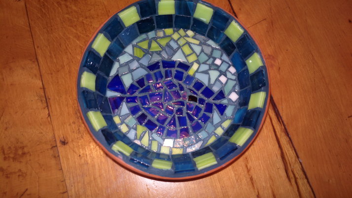 Malý mozaikový popelník s motivem ryby, mozaika z opálového skla