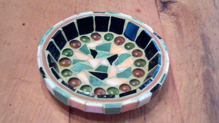 Popelník z mozaiky z opálového skla