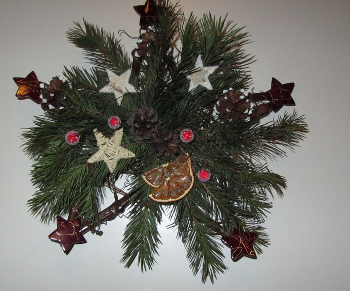 Tvořila jsem adventní věnce a mimo jiné jsem si udělala také hvězdu na dveře.