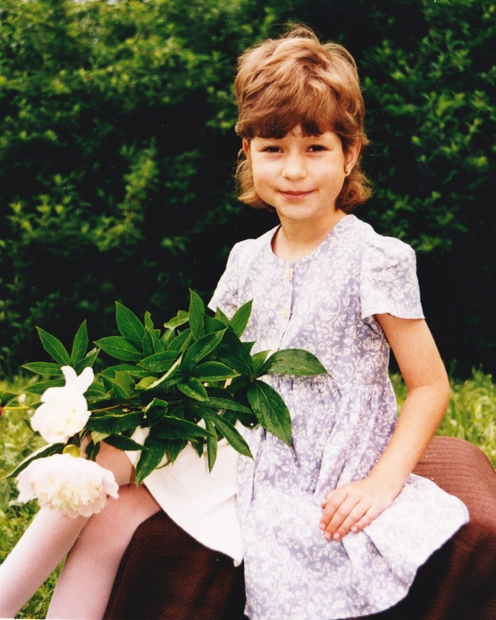 bavlněné šatičky s nabíranými rukávky a sukní, která měla uprostřed rozstřih s vsadkou