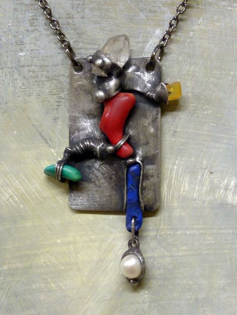 Materiály: měď, cín, křišťál, korál, lapis lazuli, karneol, chryzokol a perla