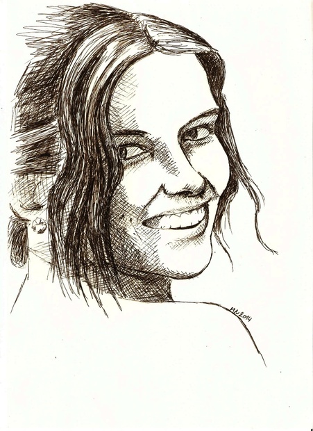 Perokresba, formát A4, kresba podle fotografie, model Kate Bekinsale