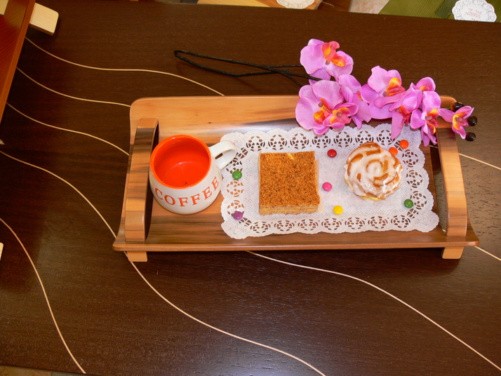 nápojový tác pro představu s dekorací, tento je prodán, ale je vystaven v jiném dezénu
