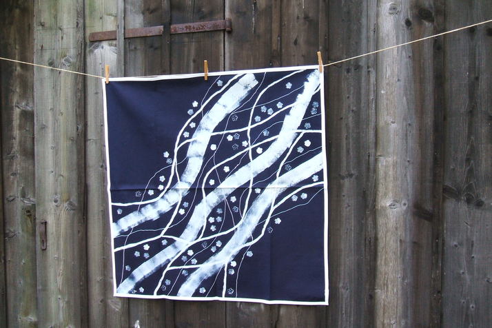 Bavněný ubrus s motivem řasy lakušník. Rozměr: 90x90.