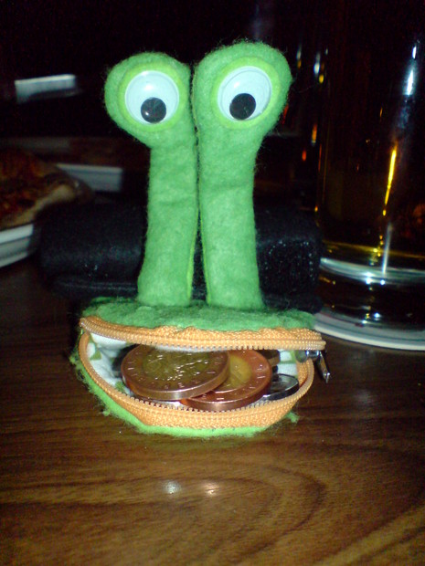 Dne 30.1. před 19:00 mi cestou Interspar - Hlavní nádraží (bohužel přes myšinu) někdo odcizil peněženku ve tvaru šneka - zelené tělíčko + tmavě modrá ulita. Obsah není důležitý (mini tesco club cart cca 4 stravenky, 200,- + cca 150,- v drobných), ale samotnou peněženku bych chtěla zpět, má pro mě velkou citovou hodnotu.!!! Doufám, že ji zloděj po vyprázdnění zahodil. Menší odměna pro nálezce jistá!