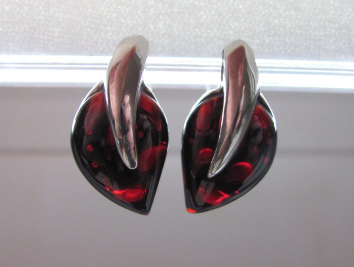 Krásné stříbrné náušnice ozdobené ručně broušenými granáty. Puncované, Ag 925. Jsou vybaveny povrchovou úpravou rhodiem.