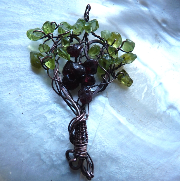 1císařovna. jednoznačně dryáda plodného zeleného stromu- kombinace olivínových a almandinových zlomků mi přišla jako dokonalé řešení... Kmen stromu omotán vlasy dryády končí srdcem ukrytým v listoví...