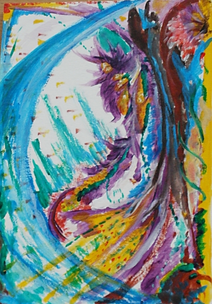 akvarelový papír, akrylové barvy, přestříkáno matným lakem