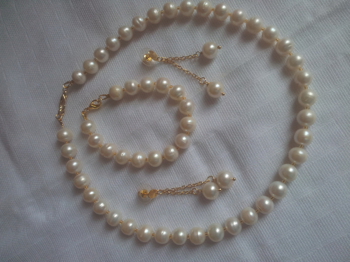 White Fresh Water Pearls Necklace, bracelet and earrings.