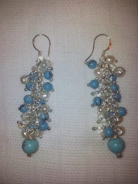 Blue howlite, agate, fresh water pearls and crystal earrings
