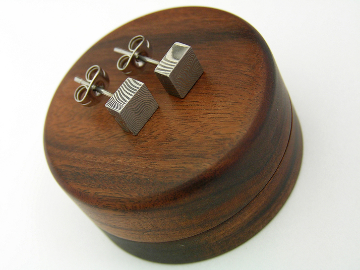 Náušnice z nerezového damašku Damasteel, krabička z Palisandru