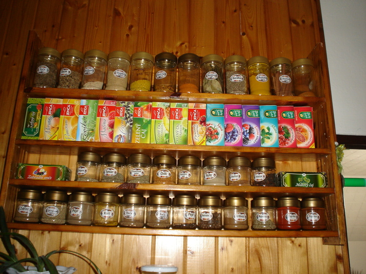 Jednoho dne bylo v mé kuchyňské skříňce víc než dost kořenek a když se na mě už po několikáté vysypaly. Zdravě jsem se naštvala a zhotovila jsem si tuto velmi praktickou poličku. Slouží mi již řadu let,už si nedokáži představit kuchyň bez tohohle praktického doplňku. :)