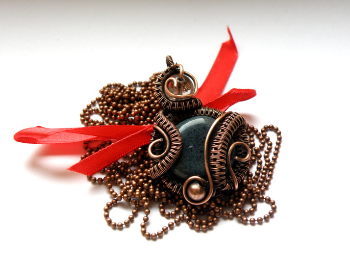 Soutěžní přívesek vyrobený z mědi, keramického kabošonu a křišťálu