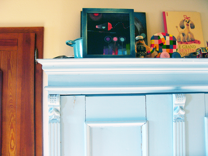 Modrokřídlý na skříni