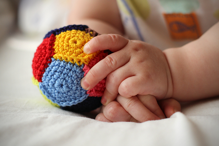 Z atestovaných přízí pro miminka, šustící s hrkátkem.