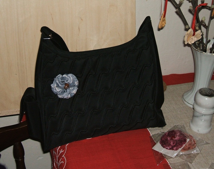 Háčkovaná ozdoba na tašku nebo klopu. Průměr: 6 cm.