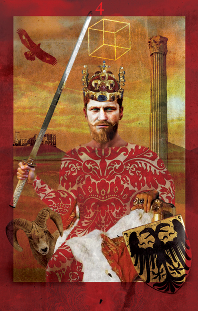 Vůle, ego, autorita, otec, seberealizace, uskutečnění. Silný, sebevědomý a panovačný muž, má vždy situaci pevně pod kontrolou. Cítí se být pánem svého osudu. Je schopen dosáhnout postavení, moci a bohatství. Postupuje neúprosně, jeho cílem je stálé zvyšování zisků. Uvažuje analyticky a racionálně. Je přísný, praktický a rozhodný. Král ovládá území silou, svou moc uplatňuje násilím, dokáže být krutý a bezohledný, jeho akce je řízena rozumem, nepodléhá citům. Může být vznětlivý a žárlivý, chce vše vlastnit (nikoli milovat). Reprezentuje hmotný, materiální svět, aktivní mužský princip.