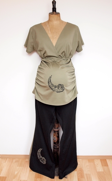 Triko jsem dělala včetně střihu a kalhoty jsou recy, rozšířené a doplněno výšivkou
