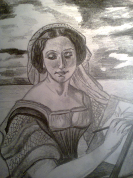 kresba tužkou, inspirováno obalem knihy Židovka z Toleda